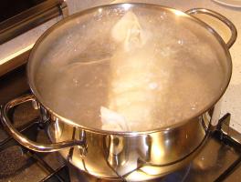 Mettere a bollire l'acqua in una pentola capiente abbastanza per farci entrare il polpettone in orizzontale.