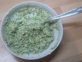 Sbattere l'uovo, mescolare con la ricotta, il parmigiano grattugiato, un pizzico di sale e il latte. Sciacquare e asciugare le foglie di basilico e sminuzzarle con le dita e aggiungerle al composto.